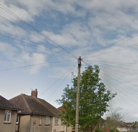 I think it must have been about 1955 when I took the snap because I was no more than six years old. The black and white image is of a lampost and a telegraph pole with a fuzzy, out of focus black dot, in the sky behind it.