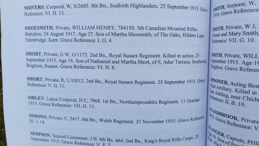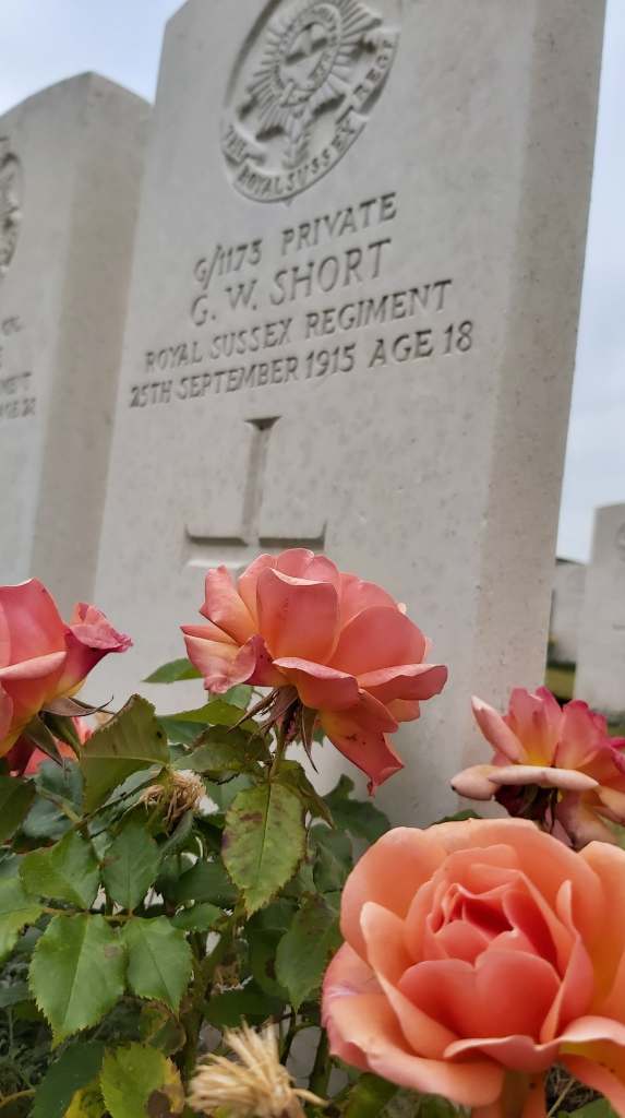 He had seen one of my notifications on Facebook about my great uncle “George W Short” who was killed in the “Battle of Loos” 1915, whilst serving in France with the 2nd Battalion of the Royal Sussex Regiment. I think Maxence had seen the one where I had stated I could not make it over to visit George’s grave this year because of Covid 19.