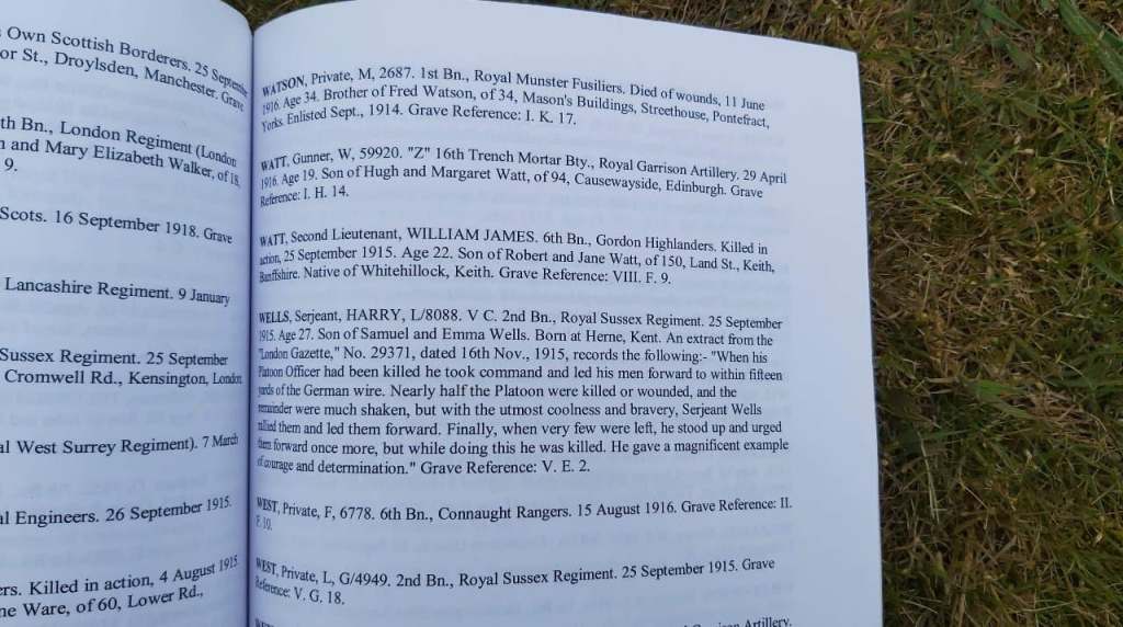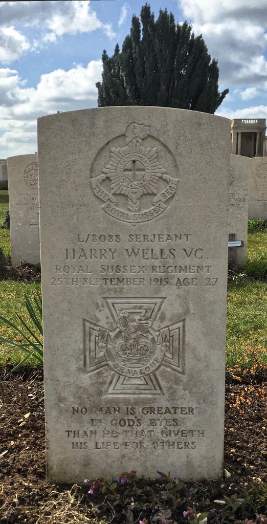 “Sergeant Harry Wells” was awarded the Victoria Cross on that fateful day 25th September 1915. The notification of that award can be seen in the photo below, taken by Maxence.