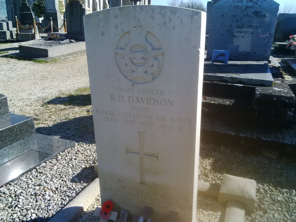 On the 28th June 1944 21 year old Pilot Officer Robert Dunlop Davidson was flying with 401 (Royal Canadian Air Force) Squadron on an armed reconnaissance mission, in his Supermarine Spitfire a Mark LFIX MJ428 (built at Castle Bromwich Aircraft Factory), when he was shot down by a Focke-Wulf Fw 190 south of Caen.