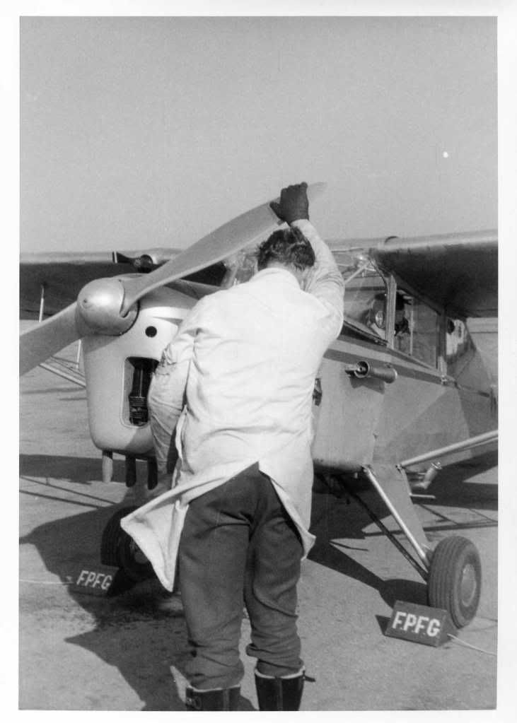 Fuel is then primed and the prop is hand-swung to suck fuel into the engine.