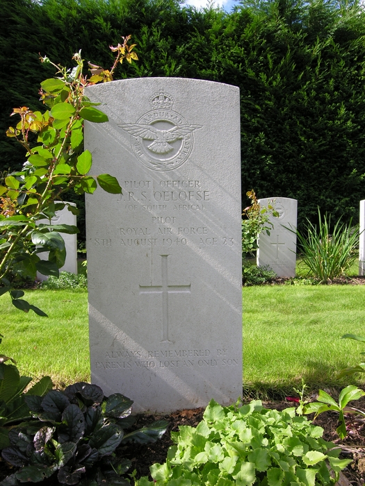 He was shot down over the Channel on August 8th, 1940. Pilot Officer Oelofse’s body was washed ashore at Worthing on September 25th – identified by personal effects found in his pockets.